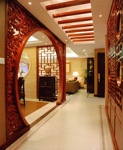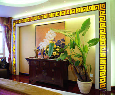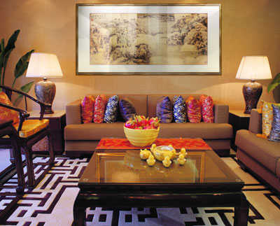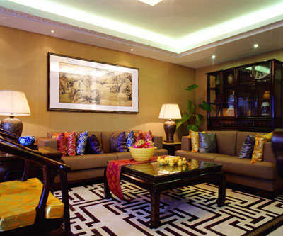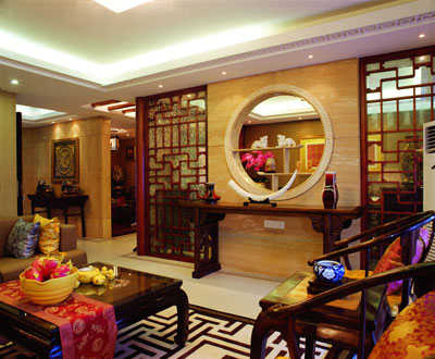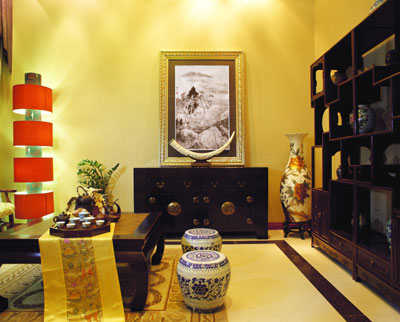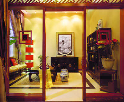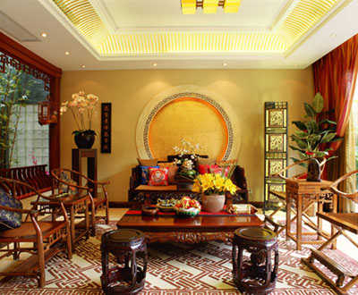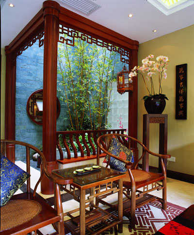 华南新城中式样板房的销售客户群是潮州人士,所以目标在于创造一个潮州的中式文化。潮州文化里有在中国源远流长的茶文化,一门古老的生活文化,但作为样板间的性质同时要结合新潮的休闲文化,因为源于生活但高于生活几乎是所有样板房包装的目的,所以我的主题是在现代理念中突出中式茶文化的丰富内涵。表现的手法有四个环境要素:布局,色彩、装饰。别墅原规划有一个封闭的两层高的茶室,如果按原构思则空间狭小,于是对原建筑作适当的改变,把茶室的与饭厅客厅相隔的墙打通,成为一个室内二层共享花园,就象古宅中的天井,为了使室内空间更延伸扩展,所以天井的每层各开一个圆形中式花格窗,另一面则每层各设计一个美人靠,均可观赏天井花园,这正是运用了中国传统园林最常见的手法-借景,天井里散置花木,随风摇曳,而天面的阳光也泻进了室内,这样的空间互动使别墅增加了卖点,天井中间放置一个鱼缸作的茶座,可边品茶边赏鱼,青石板、瓦片、花窗、青瓷花瓶的完美结合,平添趣味,客人从客厅,饭厅任何一面望去,这个天井都是一副构图完美的画面,一种传统古朴的气息扑面而来。 材料和色彩的确定来源于潮州人的偏好,他们的性格特征是热情好客,整体气氛须创造出华贵热闹,最后选取色泽鲜亮的木质。 家具和配件均选取传统中式家具,虽然是虚拟的家庭,但家具价格不菲,中式家具讲究上乘的木料,用料色润厚重,图案精美绝伦的装饰配置是对整体气氛的烘托起着推波助澜的作用的,由于精美的传统中式家具踏破鞋而无觅处,所以主卧室的家具都先由本人画图,交与工艺卓绝的工匠运用传统工艺亲手制作,那印有牡丹花、吉祥卷草的描金图案也是由人工精雕细琢而成,精致而典雅,配合整体装饰表现出一种富裕的潮州家庭雍容华贵的气氛。 对每个房间赋予生命和个性,通过装饰配置表现出虚拟主人的社会层次,职业,喜好,也可利用陈设表现此刻发生的故事情节,制造戏剧效果。这样的构思使样板房不仅仅是一间房子,而提升到真正的居住空间,有生命,能感动人的空间。