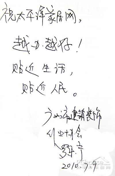 祝太平洋家居网成为行业翘楚,与设计师一同进步。——王俊钦