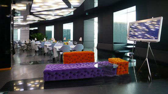 博森酒店的“个性”显而易见。酒店入口张扬的红色旋转门,足以让途经的游客回头观望;进入大堂,中间一张“毛茸茸”的绿色沙发让人心情顿时放松,仿佛置身于大自然中;简约、时尚的黑白场景里,一抹紫色和橘色打破沉静;LED灯透过特殊材料散发出柔和的光,星光般极具浪漫色彩;而至少在整个大堂,你看不到任何木质材料;客房入门处的设计温馨且极具科技特色,透过小小的电子显示屏就可以清楚地知道客房内的需求……
