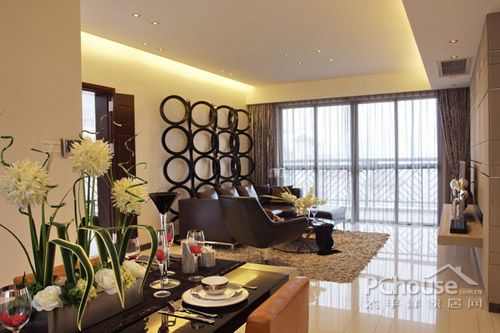 万象整合设计:本案例位于顺德顺德区大良桂畔南岸景观公园海悦新城路段,项目占地面积十几万平方米,建筑面积46万平方米,是新德业置业投资有限公司倾力精心打造出来的又一力作。本套户型是海悦新城133平方米三房二厅的单位,带入户花园,餐厅、客厅与大阳台相连。业主为80后,时尚、个性,不拘泥生活细节但是又非常注重生活情调。所以,在本套案例中我们考虑以棕色、银色和黑色三种色彩,奠定了整个空间简约时尚的格调。客厅与餐厅运用了木纹石和精致的墙纸,配上高贵的皮质沙发和长形的西餐桌,营造出一种享受生活的小资情调。沙发墙上的黑圈装饰是客厅的一大亮点,在柔和灯光的照射下,散发出时尚简约的气质。卧室运用了麦哥利木地板,色彩的设计在简约中加入了一些闪亮元素。地毯和床单都十分柔软,带给人温暖舒适的感觉。而浴室则采用简洁明亮的设计,令人身心放松。