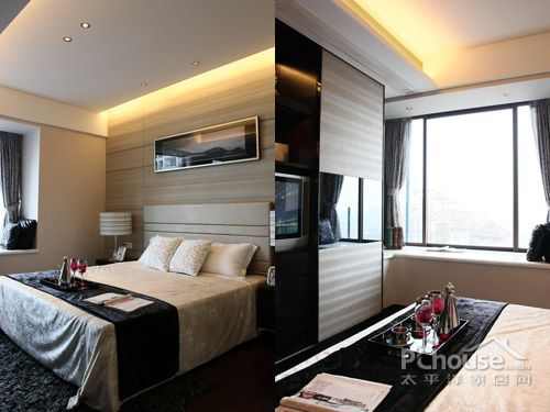 卧室:想要卧室的空间看起来更大,首先过多的家具摆设是十分忌讳的。卧室很多时候一张舒适的座椅,一盏有气质的台灯就足以诠释简约风格了。其次,繁多色彩组合也是简约风格的一个瓶颈,色彩的参杂相互填充会带来空间的视觉缩减,尽量主色选择一到两种色彩,搭配色限制在三种以内。
