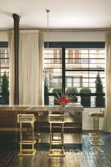 Malherbe:可能更善于混搭的手法吧,像这个墙上的挂饰是70年代的小桌子,这堵墙是重新建筑的,将颜色调的更暗些,吧台椅按照30年代的风格去设计的。