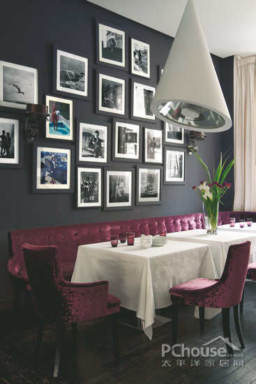 墙上是一组幸福的全家福照片,Hubert de Malherbe和设计师JeromeFaillant-Dumas合作设计了沙发和椅子(该系列家具原是为Sensing de GuyMartin餐厅定制的)。