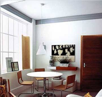 白色、灰色、原色的搭配似乎是一种小空间最为安全却显保守的解决方案,然而戈文的家却并不因此显得乏味和枯燥。他从古董店精心挑选的几件东方彩绘陶瓷瓶被分别安排在了几个角落。