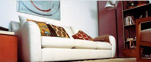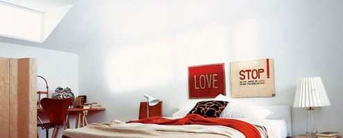 卧室的布置是舒适柔和的,大件的家具都采用了温和的质地和色彩,而床头上方的艳丽海报又成为了增添情趣的点睛之笔。