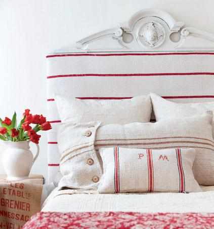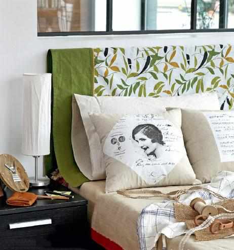 1.使用纯棉、麻质的床品和靠枕,床头板和背景墙可以用棉布自己Diy。