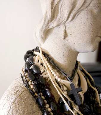 我们所知的石膏像除了可以装饰空间外,现在又多了收纳的功能。恰巧将各式项链佩戴在“优雅少女”的脖颈处,好像原本就该是这个装饰品的一部分。