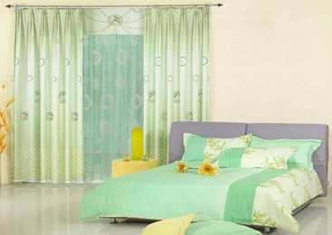 卧室中既然以床为中心了,其它饰物一般就应有“退居二线”的 衬托意识。如窗帘,面积较大,太艳、太豪华了,就会与床饰形成两个“中心”,以至让人眼花 缭乱。故窗帘应选用相应一点儿的色彩、图案、面料,像一个“仆人”站在床边。