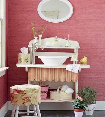 具有质感的石榴红墙面,为空间增加了惊艳的视觉效果。拉丝的墙面肌理搭配上韩式的田园风家具,一点点花布和花艺的点缀,不仅让人仿佛来到乡间田野,清新感的家居空间立即呈现在你眼前。