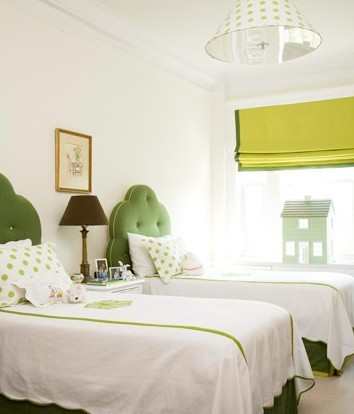 绿沁人心脾的苹果绿适合作为卧室的色调,大面积白与纯色的搭配,提升了苹果绿的彩度和温度,也提高了卧室的明亮度,有种亲近自然的感觉。罗马帘与床头板形成色彩上的呼应,如同入口即化的果味慕斯,让人觉得沉静。