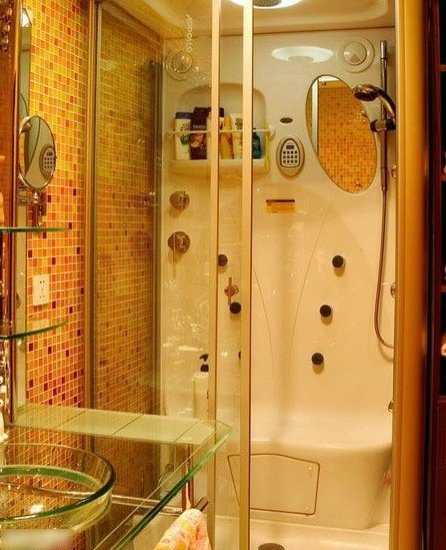 一楼主卧的卫生间,淋浴房是APPOLLO。脸盆是大林洁具的。