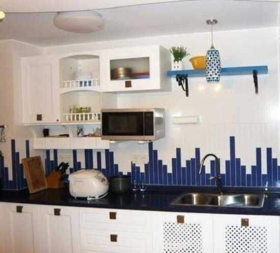 厨房是TT的骄傲,也是所有客人赞不绝口滴地方,看来TT的心血没有白费,2000多的音乐瓷砖切割费也没白花(不过,用TT的话说,有品位的人不叫音乐瓷砖,那是海浪,沙滩色的地砖代表海滩,蓝白相间的墙砖是海浪,再上去就是天空白云了,好吧,既然是他的设计,他说什么就是什么了,虽然那真的很像音乐)