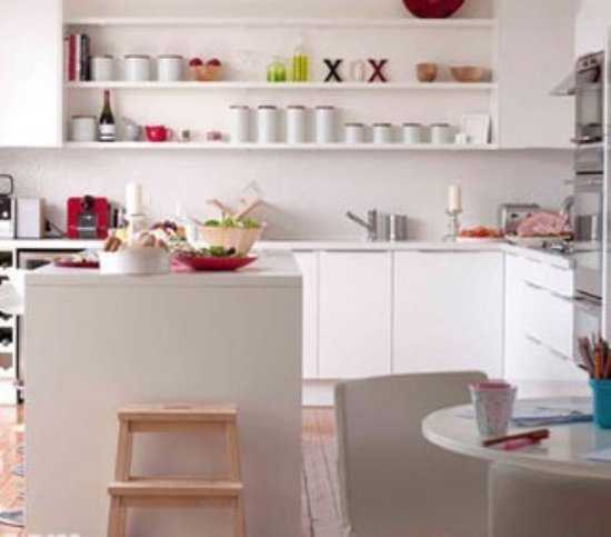 在料理区上方的墙面安装灵活的搁架,虽然只是浅浅两块木板,但在杂物繁多的厨房里绝对能发挥极大的作用,那些让厨柜烦恼不已的杂物都能有序地收纳其中,并且一目了然。