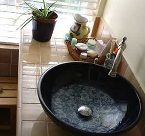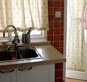 水槽的一侧。想把窗上的帘子换成更轻薄的纱,又怕来了客人会不自在