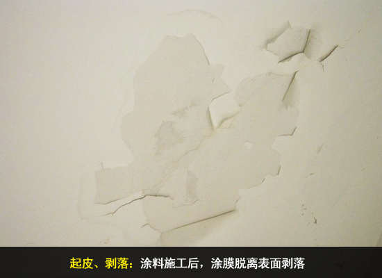 漆膜产生许多曲折、高低不平、起皮、剥落的现象。主要原因有基层未清理干净有浮灰、污渍,涂层与腻子粘接不够;腻子粘接力差,或涂料成膜不够,底材耐水性差。