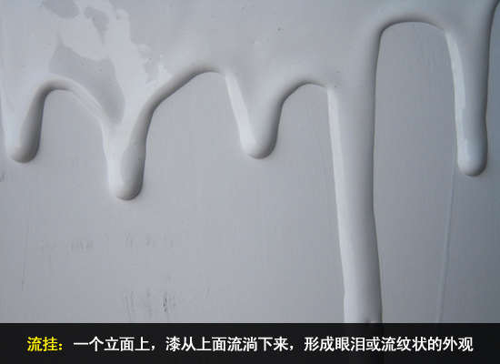 常发生在墙面垂直表面或垂直表面与水平表面相接(棱角)处,流挂处漆膜比其他表面漆膜厚。多是由于涂料稀释过度和一次刷漆量过多所致。