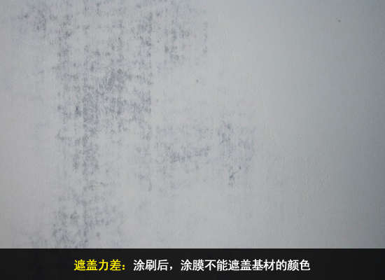 涂刷多遍,仍可见墙面基底的颜色,或整体颜色不均匀。出现这个问题的原因可能有底漆和面漆颜色反差明显;油漆被过度稀释,漆膜太薄;墙面基底为凹凸面,通常凸面漆膜过薄;鲜红、鲜黄颜色部分深色和艳色(如深蓝、鲜红、鲜黄、鲜橙等)墙面漆本身遮盖力差。