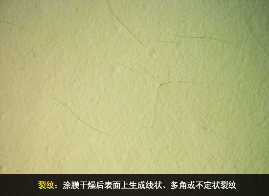 漆膜上生成线状、多角或不定状裂纹。问题产生原因可能是因为一次涂刷过厚或未干重涂;墙面基底过于疏松或粗糙;施工时温度过低;油漆底漆与面漆不配套。