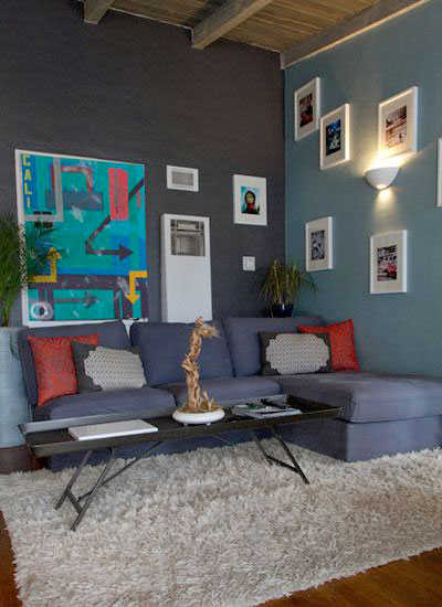 摒弃传统的白色墙面,客厅墙面使用两种蓝色的装修,让家居更有特色。
