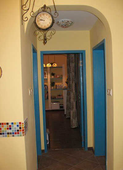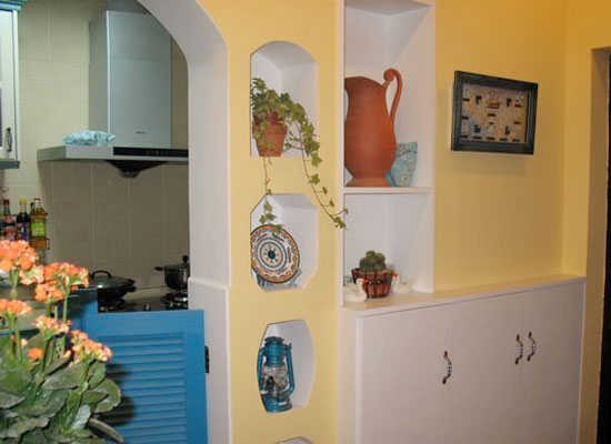 动静分区的小过道,圆形拱门,蓝色的门框是地中海风格的重要标志。