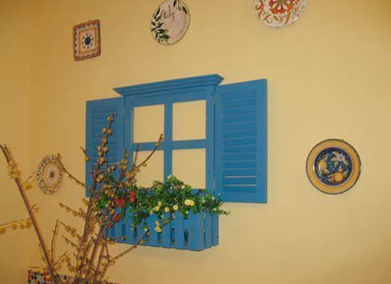 假窗,墙上的盘子还没有完全到货,还少了些,到时候再补一些!前面的腊梅花,我家那口子随意的摆放,仿佛有点煞风景!