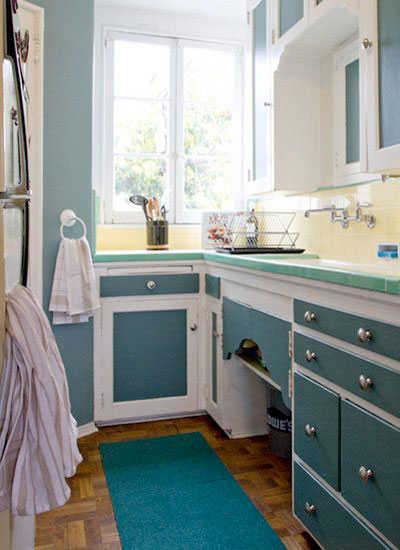 橱柜蓝白相间,让厨房更有沙滩的氛围。