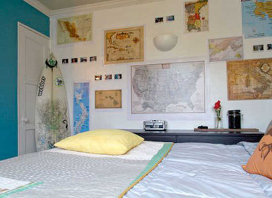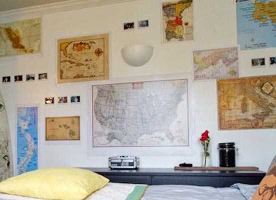 白色墙面如果加上各种地图作为点缀,那就是很好的一幅“壁纸”。