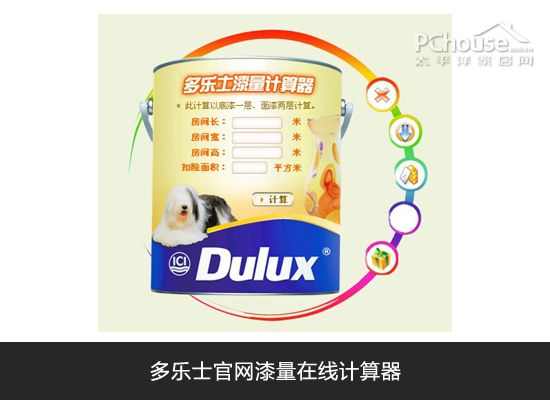 多乐士涂料在官网设置了简便易用的漆量计算测算系统,消费者只需将自己实际需要涂刷的室内长宽高,以及扣除门窗等不纳入涂漆范围的面积,便可简单测算出底漆,以及天花板与墙面所需多少升的涂料,简单且易用,计算公式合理且相对准确。