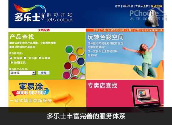 多乐士官网提供了详细的产品清单,消费者登陆官网可便捷查询到就近的品牌专卖店,而其有趣与年轻化的互动空间,让品牌在与消费者的接触互动上有着更进一步的交流。产品开通的天猫旗舰店,为消费者开通一个便捷的电子商务平台。