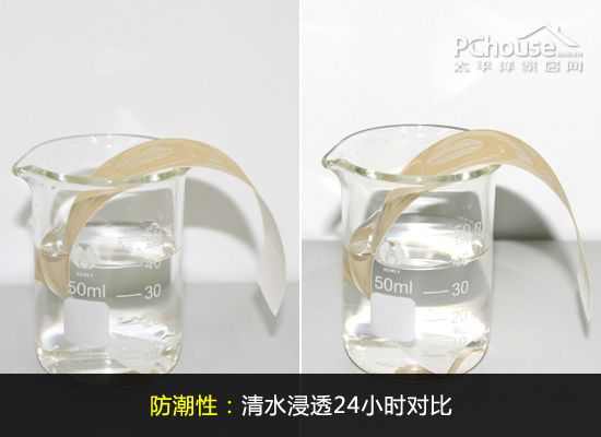 相对较薄的纯纸壁纸在春季潮湿的季节中,受潮后容易变形。为了检验壁纸的防潮性,以24小时清水浸泡对壁纸进行一系列的测试。