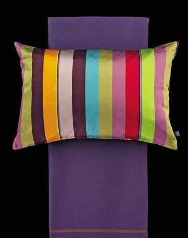 彩色丝绸条纹带着特立独行的个性,让室内氛围充满快乐。添加一条深紫色的毯子,是很好的陪衬。低调的色彩和跳跃的颜色相映成趣。