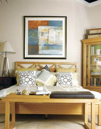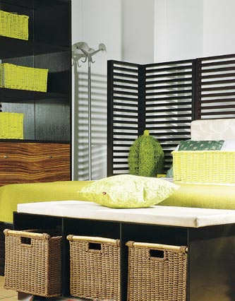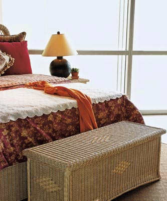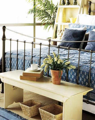 实用主义和浪漫主义可以在卧室并存,但是如果浪漫妨碍到了真正的生活,还是选择实用为好。如简单的床尾小几,或者只是放置一个藤筐,一切以简单舒适为原则,采用这些简单的储物家具,就可以很方便地达到整洁而实用的收纳效果。
