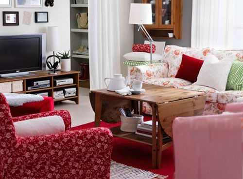 意味浓厚、色彩沉稳的仿古案头,搭上西式鲜红的柔软沙发,会擦出什么火花呢?古朴的缇花抱枕和奢华的绒布抱枕,别有一种雅致。