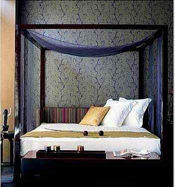 线条简洁的立柱床,富于个性又简洁大气,让卧室有宽敞的空间感,床尾几有光亮的色泽极富质感,透露着低调的华丽,空间线条也得到充分延伸,视觉上呈现出理性与感性完美结合,既优雅轻松,又井然有序。