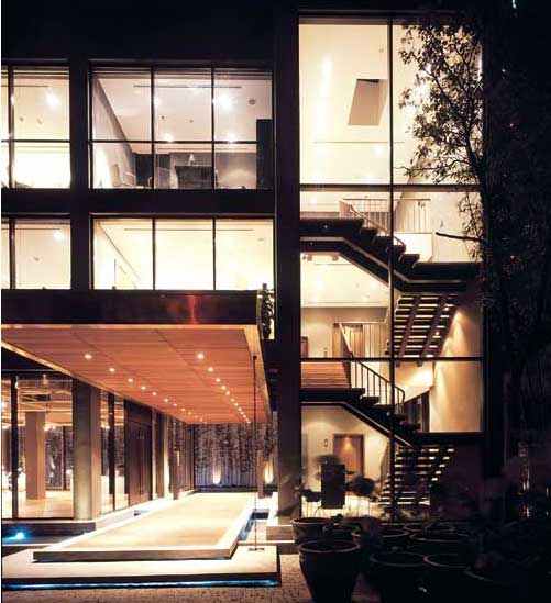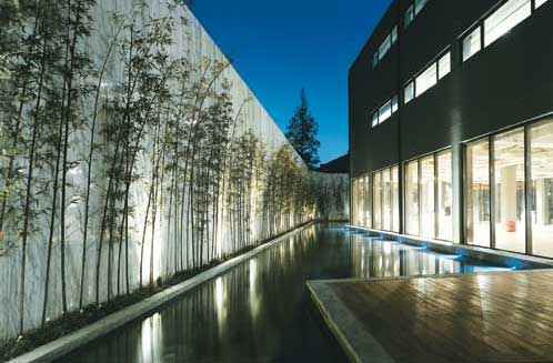 新大楼的设计通过通体落地玻璃的立面设计,使光线得以在各空间自由游走。在大楼的北边是一堵由精心挑选的大理石营造的墙体,配合水景与竹林与一楼的香格纳画廊写意相通。Kokaistudios运用了现当代的建筑设计语言,整个大楼被设想为一个由三种材料组成的优雅综合体,与历史大楼的风格相映成趣。
