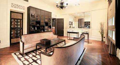 位于双子别墅西楼一、二层的江诗丹顿之家为全球仅有的三家 ”殿堂”级独特店铺之一,与其在伦敦和东京的店铺一样,其室内设计完全根据当地文化及建筑特点定制而成,Kokaistudios和Dunhill的创意团队合作重建的独特氛围,充分表现了Dunhill品牌经典的英伦风情。