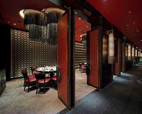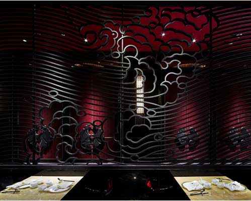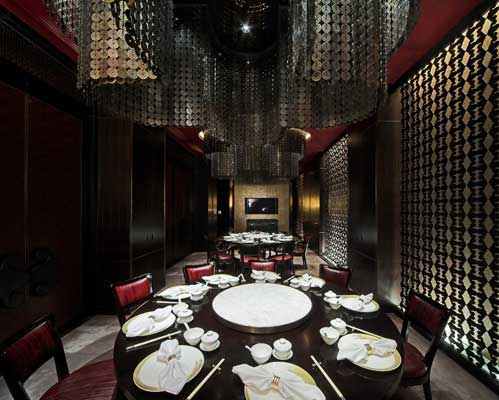 寓意吉祥如意的百宝盒既是“8餐厅”的设计主题,亦代表着设计师送予宾客的一份祝福。将古代神话中带有祥瑞之征的百宝盒融入现代设计之中,以金、红、黑作做主调,令“8餐厅”既有雍容瑰丽之姿,又带时尚洒脱之貌,重新演绎了中国文化的精髓,让餐厅内每个角落都渗透着神秘且热闹的东方气息。