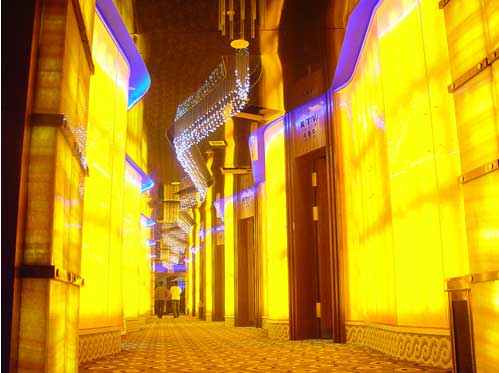 本案着重用灯光和音效制造梦幻空间。在材料使用上尽力节省投资,只在大厅、走廊等公共休闲区做重点装饰,而在面积比例最大的包厢内使用普通材料,突出表现材料的质感肌理及色彩对比,尝试引导消费者在不同消费阶段的心理及行为习惯。