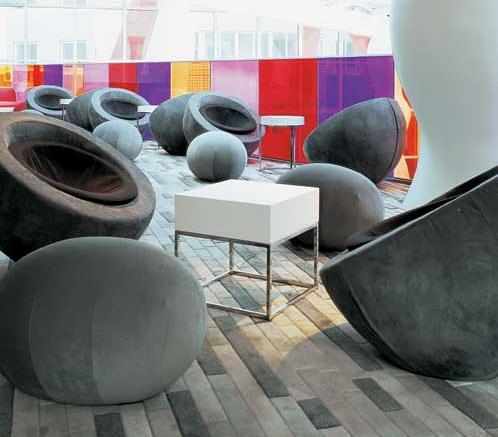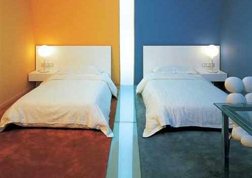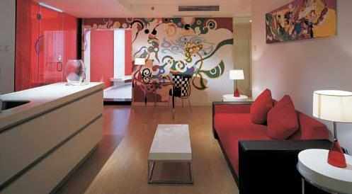 一次偶然的机会琚宾结识了五千年酒店管理公司的总裁,之后为旗下策划富邦国际酒店、唐悦酒店的整体定位与室内设计。富邦作为北京首家以艺术、个性为特色的商务型设计酒店,它的形成有着各个方面的因素,首先是所处的地理位置和周围环境紧密相连。在北京历来就有东富西贵的说法,富邦原建筑身踞CBD国贸商圈中央地带,出入多为社会精英、时尚人士。经商业分析,相邻的都是星级商务酒店,缺少充满创意的设计类酒店。其次酒店建筑原为公寓,室内户型不比标准酒店,都各不相同,致使配置规格不能统一。基于上述两点,琚宾又为业主全面剖析国际第一、二、三代酒店的走势及酒店市场推广等,最后双方达成一致,明确设计酒店的定位。
