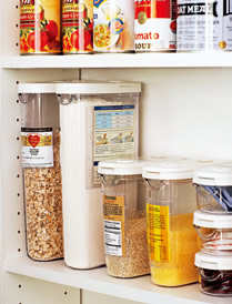 用同样形状的容器盛散装物品会比较节省占地空间,如果是食品的储藏,请在容器外面贴好标签。