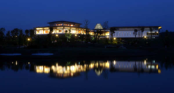 俱乐部室内设计以温馨风格为主,各会馆设计各有特色,给人眼前一亮的惊喜。俱乐部外部设计主要以高尔夫球场为主,既作休闲场所,又作运动场所。球场前九洞地处丘陵,山势连绵起伏,松林环绕,风景怡人;后九洞临湖而建,波光鳞鳞,山水相依,气蕴悠远。举目远眺,视野旷达,一派湖景与山景交融的胜境,流露山水高尔夫的真意。