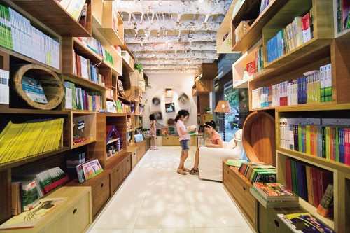 上海蒲蒲兰绘本馆面向上海市内一条往来人多的林荫路。一楼是个进深小的细长平面作为书店使用,二楼作为活动空间和办公室。