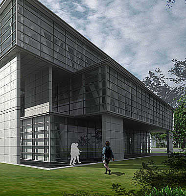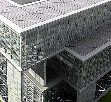 位于一个狭窄的线性校园的中心,以二种不同几何学形式相互交集所产生的艺术架构来作为整个案子的基调。大厦在上面有二个水平面为学生文娱中心、长方形底层为7-11商店。一个运用自由格式、用有角度的大阳台和不规则地被折叠的铁件机盖造型,来连接这二个楼地板的舷梯,进一步舒展建物融入树木繁茂的围拢。