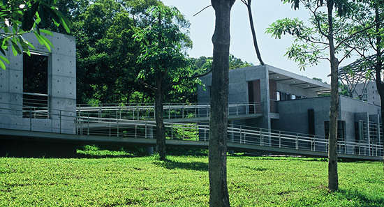 首先尊重原有校园的自然地景与乡土人情,融入艺术大学创意与开朗的学风,因此本案在很低的预算与校方很高的期许之下,在构造上仍采用钢筋混凝土,除了局部采用抿石子工法外,整栋建筑则以清水模来处理,希望保有建筑原味并与环境呼应。自然建筑不仅是单纯技术的社会进化过程,也是希望藉此改变人与环境的优质生态。