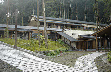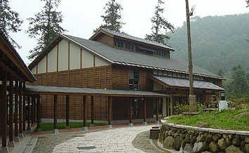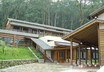 全区以绿建筑导向,全区采纯木构造建筑—骨架使用,〈除了办公室及图书室是钢筋混凝土建造〉,主体采用西方结构 (剪力墙系统)、东方之行架系统,因受限于经费,屋顶采用陶瓦、沥青瓦搭配使用,主要建材为美国南方松,沿著建筑的廊道随处都可以感受到木质的温暖,其他就地取材,运用当地开凿的石头、原有块石筑墙、砾石铺路部分,再加上购买来的石头,坚持保留校地原始杉树林遍布之风貌。