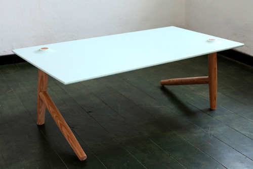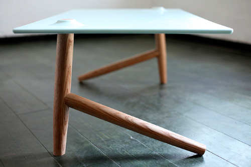 只有两只腿的茶几,似乎不可能存在,但看了谢伊·卡蒙的这款设计,相信你会改观。从图片来看,茶几的每只腿都是“Y”型设计,这样茶几虽然只有“两条腿”,但也有四点支撑,可以和普通的四腿桌子一样保持完美的平衡。而且茶几的“腿”采用橡木制作,硬度非常不错。卡蒙调皮的设计是不是挺有意思的呢?