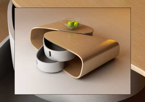 “旋转抽屉”茶几的亮点主要在它的“秘密”功能。简约的外观,但杨克设计的这款茶几暗藏着四个可随意旋转的抽屉,这可以收纳杂志、DVD光盘、遥控器等客厅杂物,而且这样的设计能把杂物很好的隐藏起来,保持客厅空间的整齐美观。只要轻轻一拉,抽屉便“变出来”,轻轻推进,它又隐藏进茶几里,保持茶几完美的简约线条。