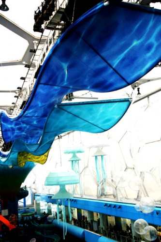 水立方内部上空悬挂彩色水母,彩色滑道互相缠绕,蜿蜒曲折。一条152.40米长的缓流松松地环绕整个空间,但也有更刺激的,波浪池里将人工制造海洋波浪。公园还有一个近似垂直的滑道,游客通过位于起点的启动密封舱进入滑;还有一个45英尺宽的滑道,四个人可以共享一个“小船”,滑到下面的“大碗”里。水立方的魔幻变身使它不会在没有游泳比赛的情况下闲置,还能为大家提供一个可以娱乐的空间。