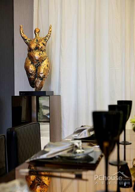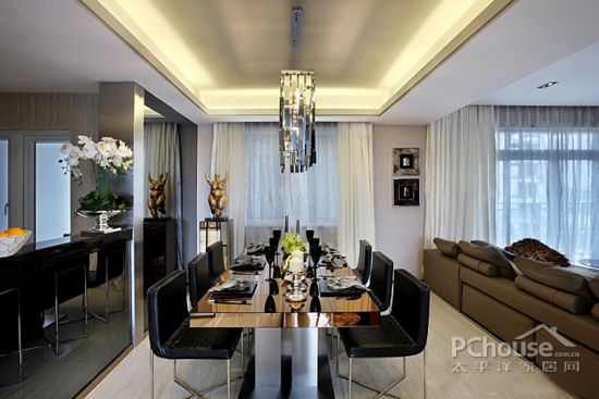 样板房设计之中设计师的水准高低,大多关注于项目的空间布局和主题定位,在确定这两者能够极好的协调之后,质感其实也是一个空间非常重要的部分,如何提升空间质感和项目品味,要求的不仅仅是一个设计师的设计规划水平,更多的还是需要设计师整个的视觉审美、美学素养。在此案中可以欣喜的发现设计的良苦用心,整个项目的明亮对比合适,在公共区域大多选择富有质感的黑色皮具搭配木色地板和家私,利用黑色的压抑性将空间质感浓缩于木质的家私中。