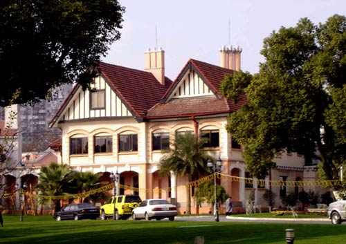 嘉道理住宅气势恢宏,占地14000米,在寸土寸金的上海,更显示出它的卓然不群。宽广的草地让人顿觉视野的开阔;中间就是对称、端庄的住宅,光建筑面积就有3300平方米,1929年甚至还加盖了一层。你一见到它,会感受到宛如皇家宫殿的华贵惊艳,你很难看到如美钻一样的建筑,但它的确就是。匀称整齐的柱石,撑起了宫殿的巍巍骨架;端正狭长的阳台,尤其是二楼的阳台,正好充当了天然走廊,上面应该弥散着仕女裙裾翩翩的幽幽气息。